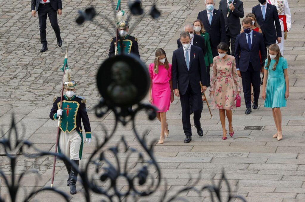 La monarquía “simboliza la continuidad de nuestra nación en la historia como comunidad política, cultural y humana”, ha abundado el Rey en su discurso de la ofrenda nacional a Santiago, a la que además de su familia asistían, entre otros cargos, las ministras gallegas —de Trabajo y de Asuntos Económicos—, Yolanda Díaz y Nadia Calviño. España, sus “lenguas y culturas”, ha leído a continuación Felipe VI en gallego, son “una obra colectiva en la que los sueños de muchos antepasados se plasmaron en una convivencia democrática”. Finalmente, el jefe del Estado ha invocado a Santiago para que ayude a “cultivar” la “tolerancia”, el “respeto por la diferencia” y la unión “entre pueblos y culturas” con el fin de “cimentar los caminos de unidad, solidaridad y concordia” que “aseguran nuestra convivencia en democracia y libertad”.