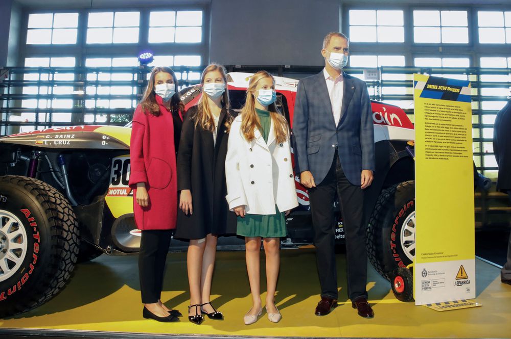 Los reyes Felipe VI y Letizia ha realizado su primera aparición con sus hijas, la princesa Leonor y la infanta Sofía, en el que ha sido el primer acto de los que se celebran en unos inusuales premios Princesa de Asturias, a causa de la pandemia. La familia, rodeada de un reducido grupo de autoridades, ha levantado el telón de la celebración en la que será este año sede de la práctica totalidad de las actividades paralelas a la entrega de los Premios: la antigua Fábrica de Armas de La Vega. Los cuatro han acudido a conocer las instalaciones permanentes de LAFPABRICA, donde han visitado el complejo y asistirán a un espectáculo musical. Una cita que ha marcado el punto de partida de tres días de citas y festejos diferente al de pasadas ediciones. Este viernes será el día que centre los actos más emblemáticos, por la mañana y en el hotel de la Reconquista, los Reyes y sus hijas presidirán una audiencia en la que recibirán a todos los galardonados y por la tarde se procederá a la ceremonia oficial de entrega de premios en el mismo lugar.