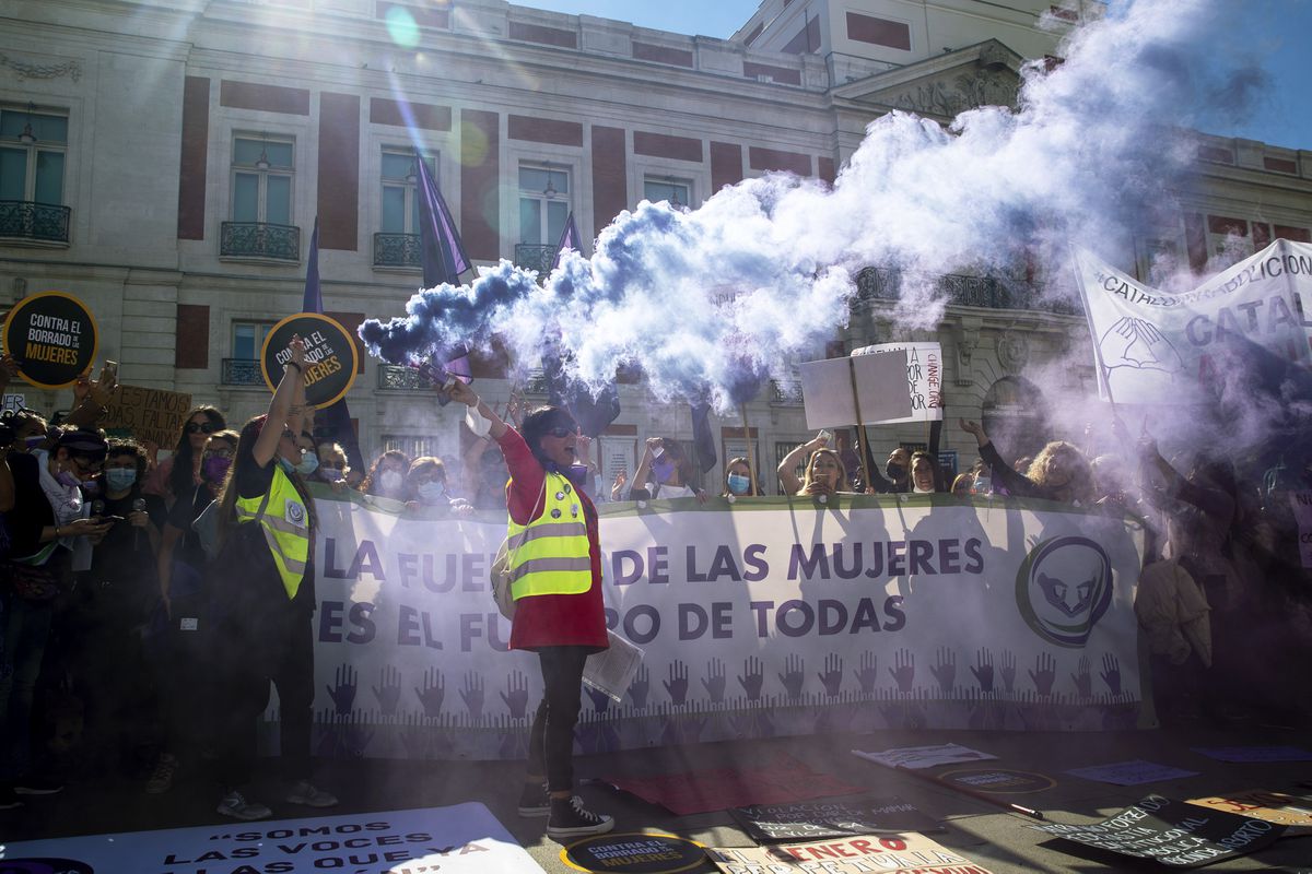 Las demandas incluidas en el manifiesto se han gritado en el Paseo del Prado este sábado y se han leído en la Puerta del Sol, inundada de humo de color morado. Entre las exigencias figuran: el cumplimiento de todos los convenios internacionales que tengan como objeto frenar el “terrorismo machista”; una legislación integral para la abolición de la prostitución, que definen como una “violación pagada”; leyes para la persecución y erradicación de la pornografía, que es la “escuela de la violación”; que nadie pueda reclamar la paternidad de una criatura nacida por vientre de alquiler; la prohibición de técnicas de reproducción asistida como la extracción de óvulos para terceros o los trasplantes de úteros en mujeres vivas; que se acabe con la violencia médica y obstétrica; que se garantice el derecho al aborto; y, que los “deseos individuales o sentimientos” no prevalezcan sobre los derechos de las mujeres. “¡Que no paremos, mujeres, que no paremos!”, han coreado las participantes.