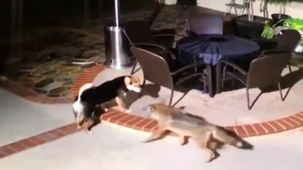 San Diego, CALIFORNIA – Una pelea entre dos perros y un coyote fue captada en video afuera de una casa en Rancho Peñasquitos.