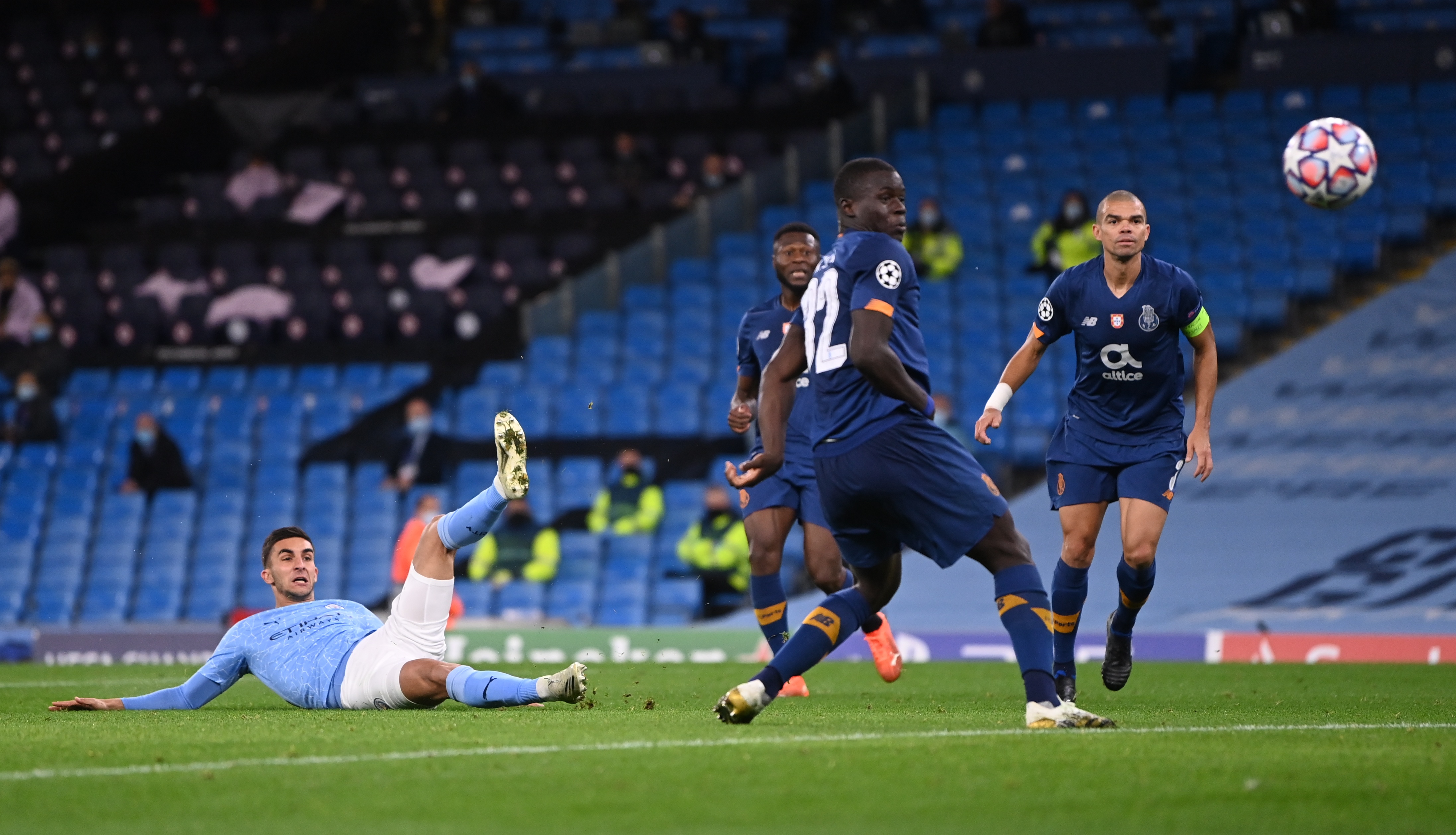 A la vuelta del descanso, Gundogan marcó de falta directa después del acoso progresivo sobre la portería de Marchesín. Salvado en la raya un tiro de Marega, el City creció en confianza. Gundogan obligó a Marchesín a una estirada antes de que Ferrán Torres, que entró por Agüero, reventara el partido. El extremo español tiró una pared con Foden y se internó en el área como una bala para recoger la devolución. Cuando Pepe le salió al cruce lo quebró con la cintura y remató solo.