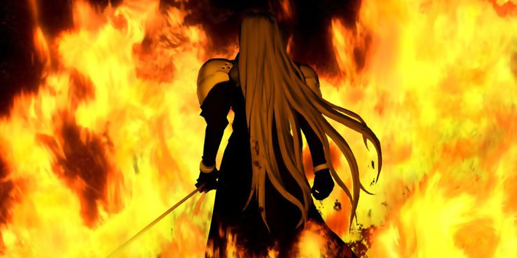 Sephiroth podría ser el villano de FF7, pero el jugador no lo ve hasta después de que la fiesta se va de Midgar. El villano del acto de apertura de FF7 es la Shinra Electric Power Company, y Sephiroth solo se menciona de pasada. Sephiroth no tiene un papel tangible en la historia hasta que mata al presidente Shinra, dejando una copia de Masamune clavada en su espalda. Esto le indica a Cloud que Sephiroth ha regresado, lo que lo lleva a él y a sus aliados a dejar Midgar para cazarlo. Una vez que el grupo deja Midgar y llega a Kalm, Cloud cuenta la historia de la misión final de Sephiroth a Nibelheim, donde se lo ve por primera vez y se muestra su increíble poder, mientras descuartiza monstruos de alto nivel en un solo ataque. los Descanso DLC que termina en Intergrado confirma que el grupo acaba de llegar a Kalm en la nueva línea de tiempo, por lo que el flashback de Sephiroth debería aparecer al comienzo de FF7 Renacimiento.