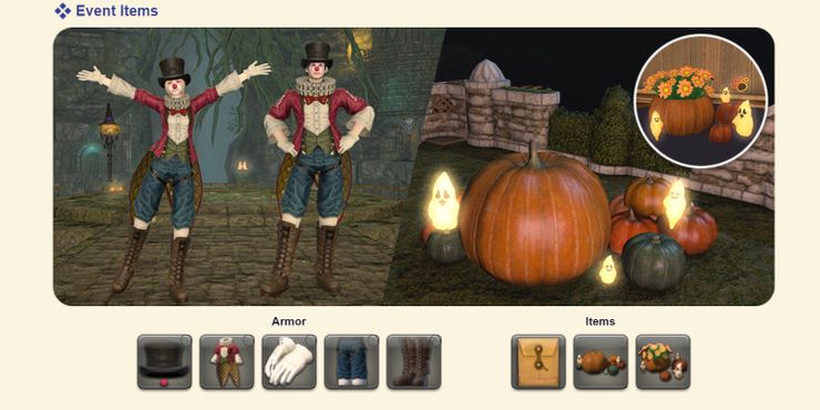 Desafortunadamente, aunque FFX IV a veces ofrece monturas o súbditos exclusivos del evento como recompensa, la celebración de este mes no lo hará. En el lado positivo, los jugadores que estén entusiasmados con el tema del payaso estarán encantados con la recompensa “Cosméticos modernos: payasadas”, que desbloqueará una opción de pintura de cara de payaso en el menú de personalización del personaje. Los fanáticos también podrán obtener una decoración de mesa llamada “Jarrón de flores de calabaza” y un elemento de mobiliario para exteriores llamado “Conjunto de calabaza embrujada”. Estas son grandes recompensas para los pocos jugadores que han podido obtener vivienda en uno de FFX IVLas áreas residenciales de , pero pueden ser decepcionantes para aquellos que no tienen un lugar para ponerlos aparte del inventario de su criado.