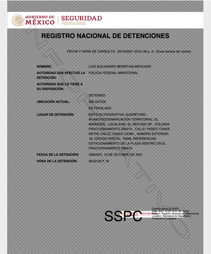 De acuerdo con el Registro Nacional de Detenciones, la captura se dio en El Marqués, municipio de Querétaro, el sábado pasado.