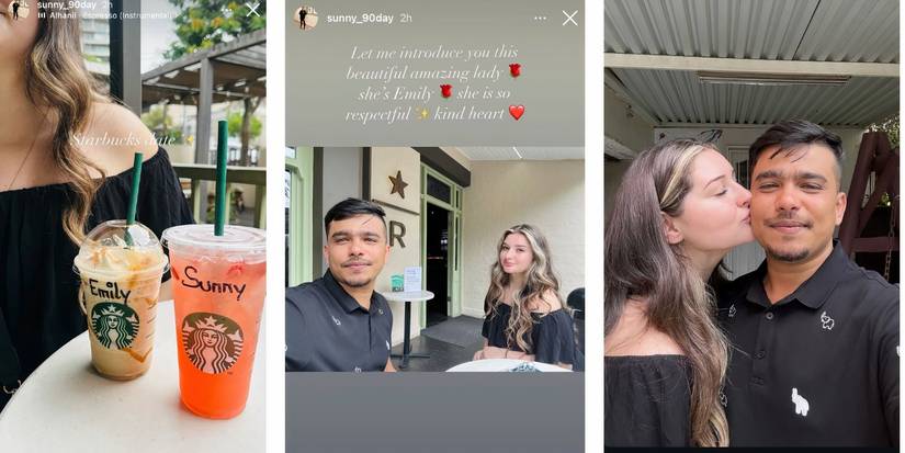 En -hiBbitz reembolsó una historia de Sunny publicada el 17 de marzo de 2025. Se filmó antes de su primera reunión con “Emily Nicole Sunny. ” Sunny le dijo a su novia que no podía esperar para verla mientras se dirigía al aeropuerto. Fiantado de 90 días: antes de los 90 días Star compartió una historia diferente con su nuevo amor tal como lo subtituló “,”Déjame presentarte a esta hermosa dama increíble. Ella es Emily. Ella es tan respetuosa. Corazón amable.“