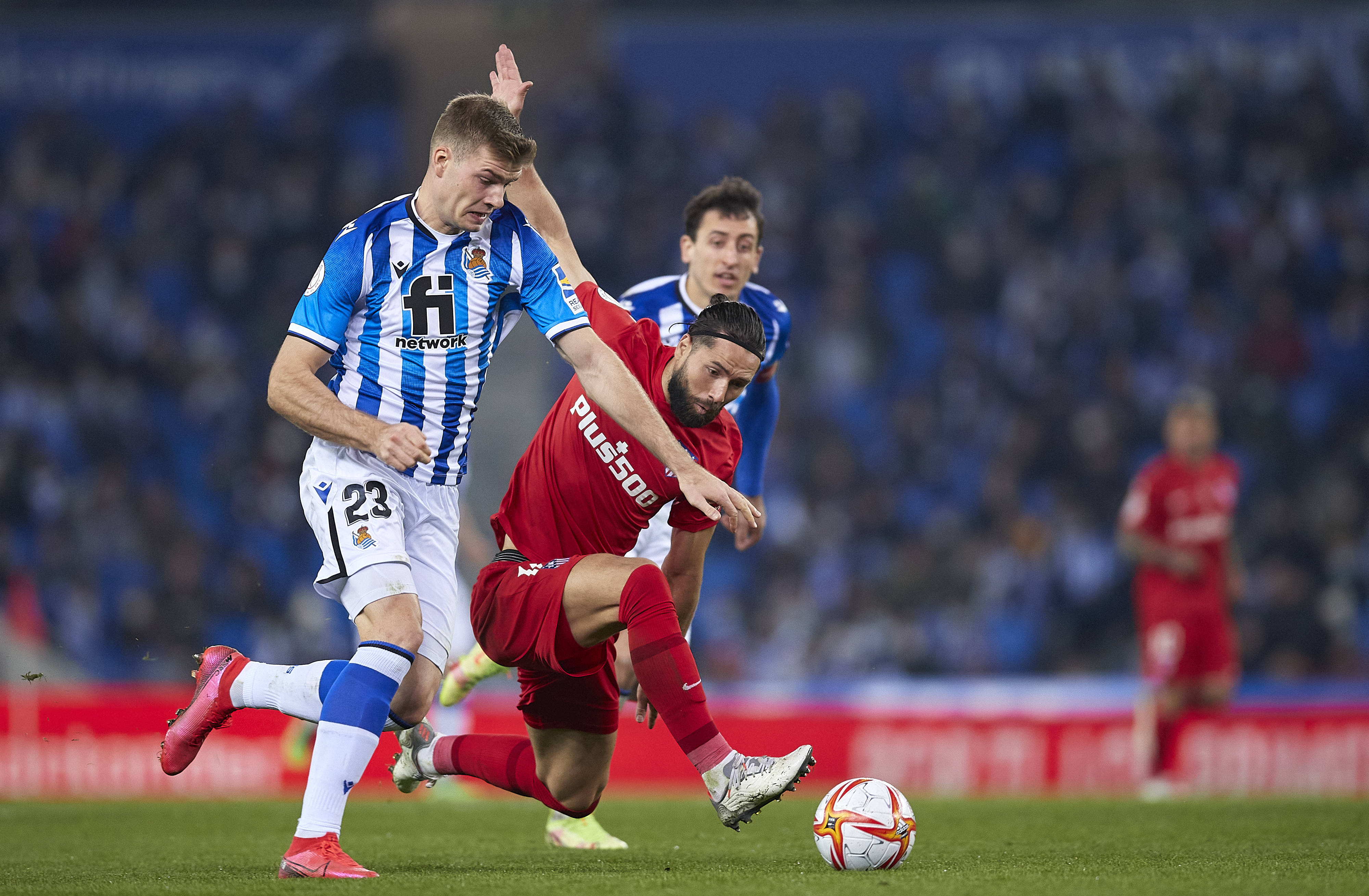 Y luego, después de un tiempo de aparente calma, marcó la Real. Un centro de Zaldua desde la derecha cruzó el área. Entró Januzaj al remate, chocaron Felipe, Vrsaljko y Correa en el intento de defender la acción y la pelota la remató el delantero para batir a Oblak. Un desastre en la zaga colchonera. Se ponían los jugadores de Imanol por delante, y con el consiguiente subidón anímico en una eliminatoria tan exigente.