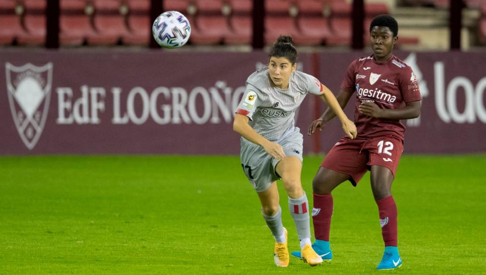 El duelo comenzó con un susto para las rojiblancas. Asantewaa sorprendió a la defensa del Athletic y consiguió marcar, pero la árbitra lo anuló por fuera de juego. Las riojanas comenzaron mejor. Tuvieron el control del juego y obligaron a las de Villacampa a aguantar atrás.