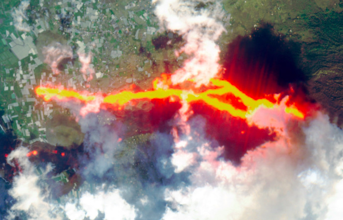 Tras el derrumbe parcial del cono del volcán el sábado, una nueva colada de lava se dirigió hacia el mar, asolando las plantaciones de plátanos y aguacates y la mayoría de las casas que quedaban en el pueblo de Todoque.