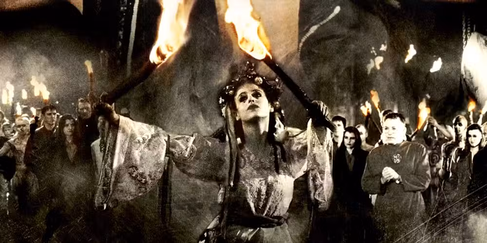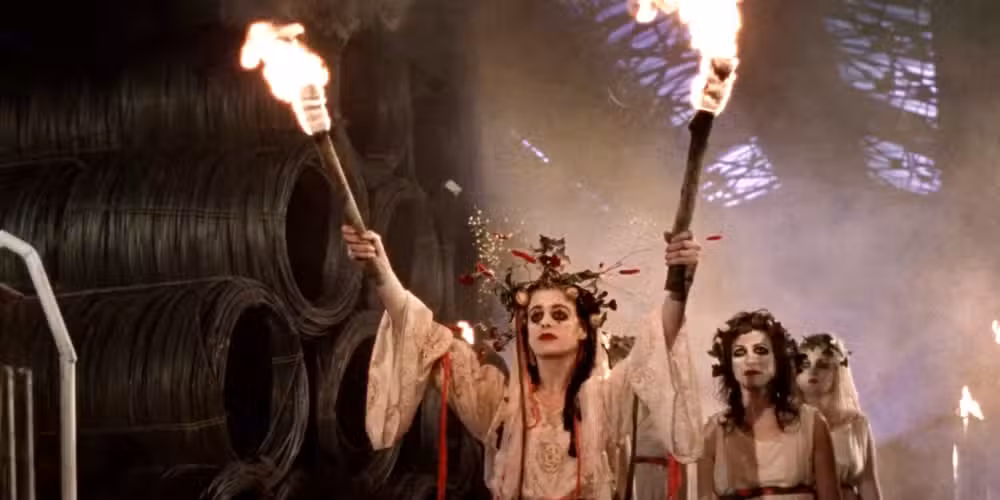 Por un lado, Tierras Oscuras levanta un lote de El hombre de mimbreotra historia sobre un protagonista obsesionado que es el objetivo de un culto pagano.. Desde el héroe que confía en personas que están secretamente aliadas con la secta hasta los interludios musicales, el horror de 1996 suena como una nueva versión más urbana del clásico de Christopher Lee.