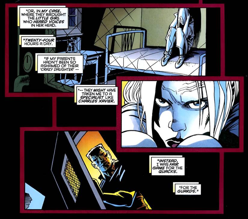 Emma Frost, como muchos mutantes, no recibió una cálida recepción cuando sus poderes fueron revelados al mundo por primera vez. Su padre, un hombre extremadamente rico y odioso, hizo internar a Emma en una institución mental.