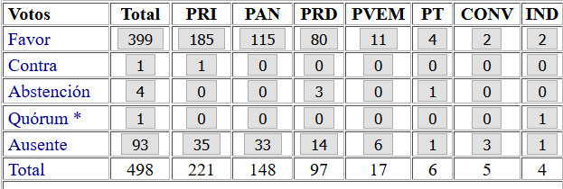 En el tablero de votaciones también se manifestó el apoyo de la entonces diputada independiente Tatiana Clouthier Carrillo.