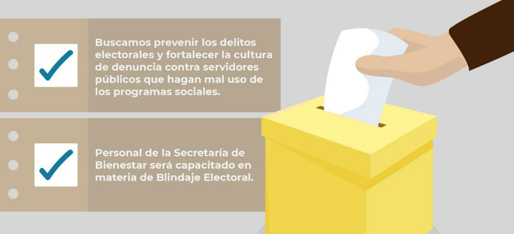 Ambas instituciones se comprometieron a fomentar la aplicación de los lineamientos de Blindaje Electoral entre los servidores públicos de Bienestar, así como presentar una evaluación de resultados acordados sobre el proceso electoral y entregarlo a más tardar 60 días naturales después de concluida la jornada electoral.