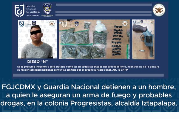 La Fiscalía General de Justicia de la Ciudad de México (FGJCDMX), en coordinación con elementos de la Guardia Nacional (GN), detuvieron en flagrancia a un hombre, señalado como probable líder de una célula de La Unión Tepito que opera en la alcaldía Iztapalapa.