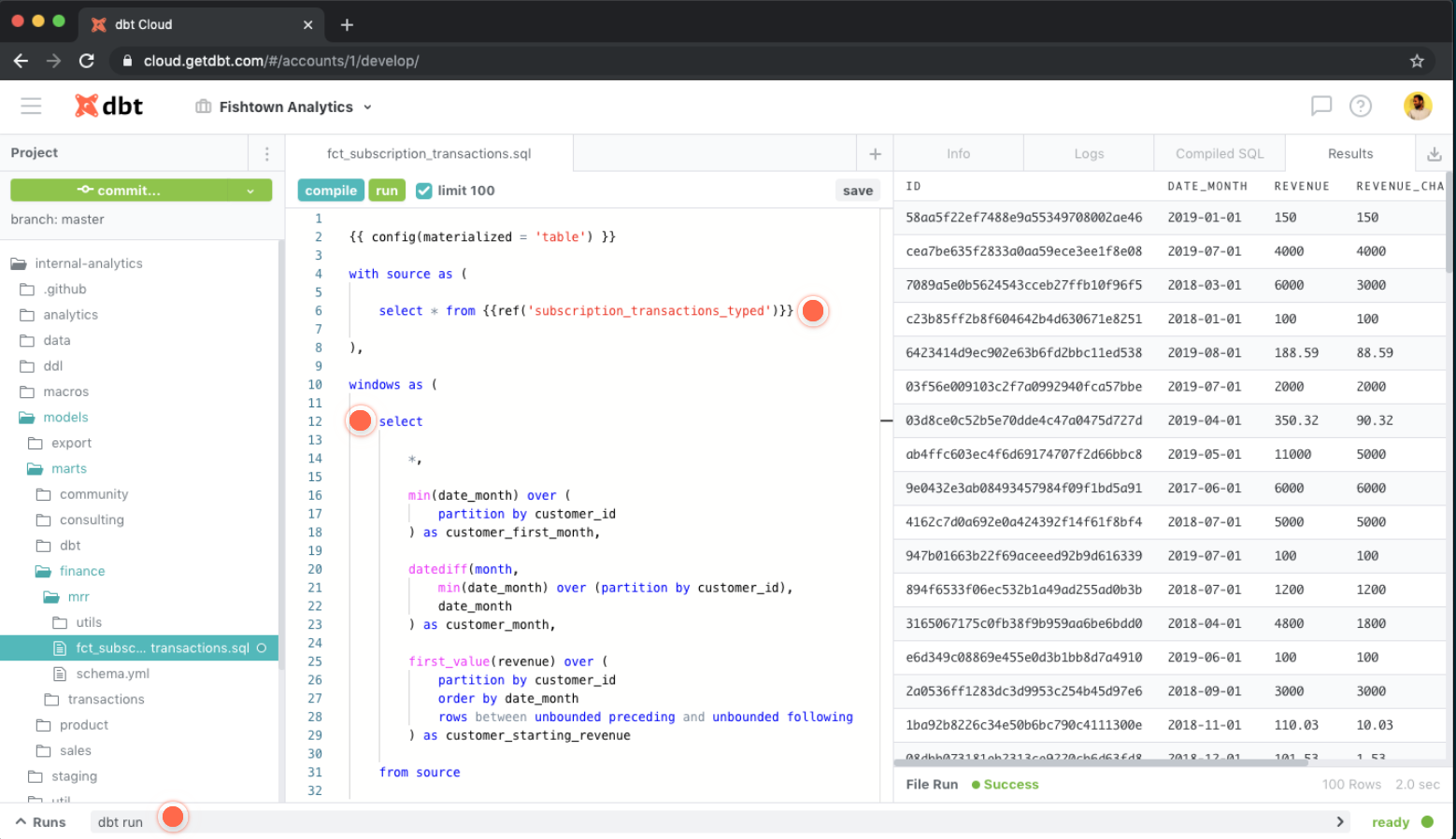 La empresa está construyendo una plataforma que permite a los analistas de datos crear y difundir conocimientos organizacionales más fácilmente. Se centra en el modelado de datos, con su herramienta dbt que permite a cualquiera que conozca SQL crear flujos de trabajo de transformación de datos. Dbt también cuenta con soporte para probar automáticamente la calidad de los datos y documentar los cambios, pero quizás lo más importante es que utiliza técnicas de ingeniería de software estándar para ayudar a los ingenieros a colaborar en el código e integrar los cambios continuamente.