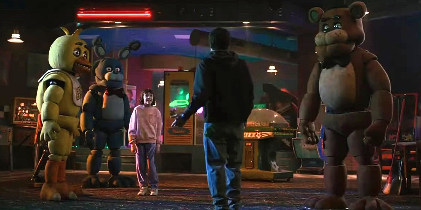 Al igual que en el primer juego, cuatro personajes animatrónicos principales rondan los pasillos de Fazbear’s Pizza de la película: Freddy Fazbear, el oso mascota de la franquicia con sombrero de copa; Bonnie, una conejita de aspecto amenazador; Chica, un pájaro dentado que empuña un pastelito maníaco; y Foxy, un zorro pirata con un gancho en lugar de pata. Sin embargo, no es ahí donde Cinco noches en freddy’s la tradición se detiene. Hay muchos otros personajes animatrónicos que surgen a lo largo de la serie, con el Cinco noches en freddy’s película que cuenta con varios cameos, desde el susto que es Balloon Boy hasta el amenazante Golden Freddy.