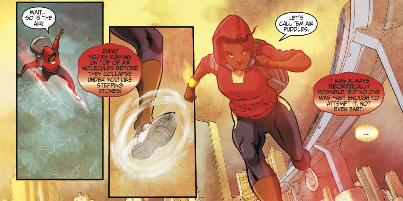 - Danica Williams es una extraordinaria Flash del futuro que tiene la capacidad sin precedentes de correr sobre moléculas de aire, lo que la distingue de otros velocistas.