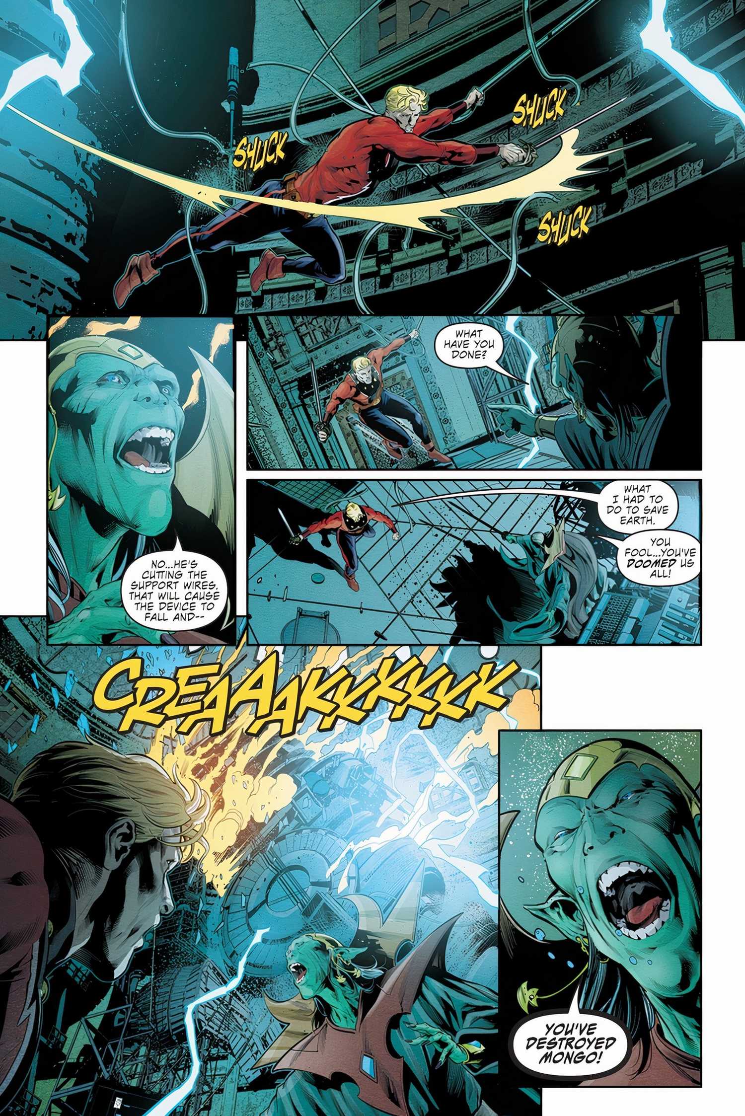 Una vez dentro, Intenta destruir al Unraveler, pero destruye el planeta Mongo en el proceso.