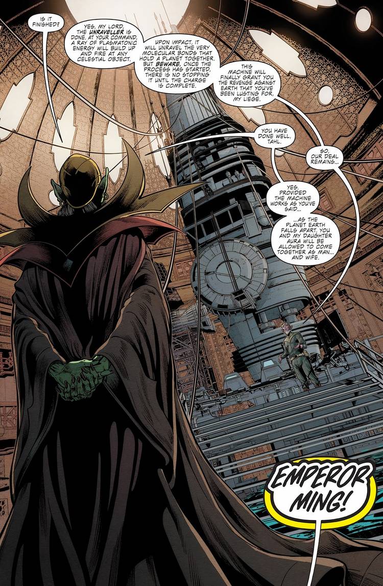 Día del cómic gratuito: Flash Gordon #0 está escrito por Jeremy Adams y dibujado por Will Conrad. Acaba de terminar el trabajo en el arma más nueva y mortífera de Ming: el Unraveler. Este enorme asesino de planetas, una vez disparado, desentrañará la estructura molecular de su objetivo. Ming tiene la intención de utilizarlo en la Tierra. Fuera de la ciudadela de Ming, Flash Gordon lidera un ejército con la esperanza de detener a Ming antes de que pueda activarlo.