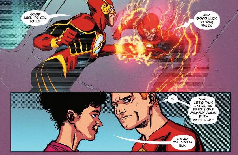 En El destello #13 de Simon Spurrier, Ramón Pérez, Matt Herms, Pete Pantazis y Hassan Otsmane-Elhaou, Wally West evita que los Arc Angles envenenen el Cambio Profundo e impidan el paso del tiempo, salvando así el universo. The Deep Change termina dando a luz con la ayuda de la Familia Flash y luego los devuelve a su plano de existencia. Mientras el polvo de su excursión cósmica se asienta, Wally comparte que tuvo una visión durante el “parto” del Cambio Profundo, donde vio dos Flashes diferentes que se hacen llamar Wally West.