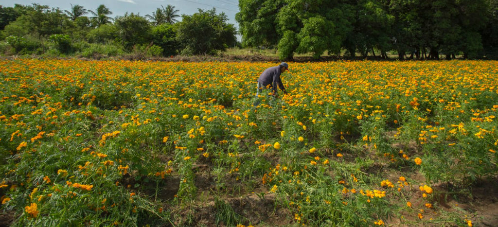 Blanca y Óscar son un joven matrimonio que hace un par de años inició con el cultivo de flor de muerto en una parcela localizada en tierras de Tehuantepec y que apenas alcanza la media hectárea equivalente a 5 mil metros cuadrados y que rentan de forma anual.