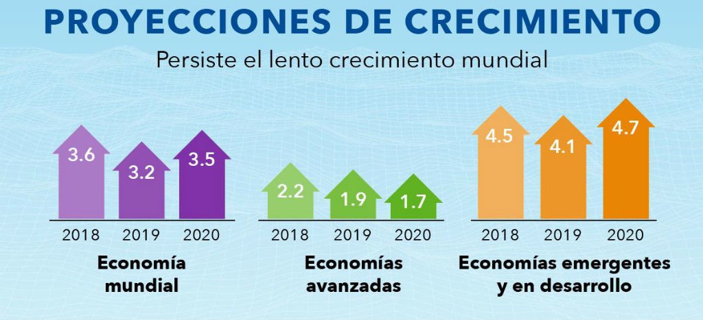 Con un crecimiento mundial moderado y el predominio de riesgos a la baja sobre las perspectivas, la economía mundial permanece en una coyuntura delicada. Últimas proyecciones del informe #WEO en #IMFBlog https://t.co/C1wIbYeq4B pic.twitter.com/g2rABPPfTw