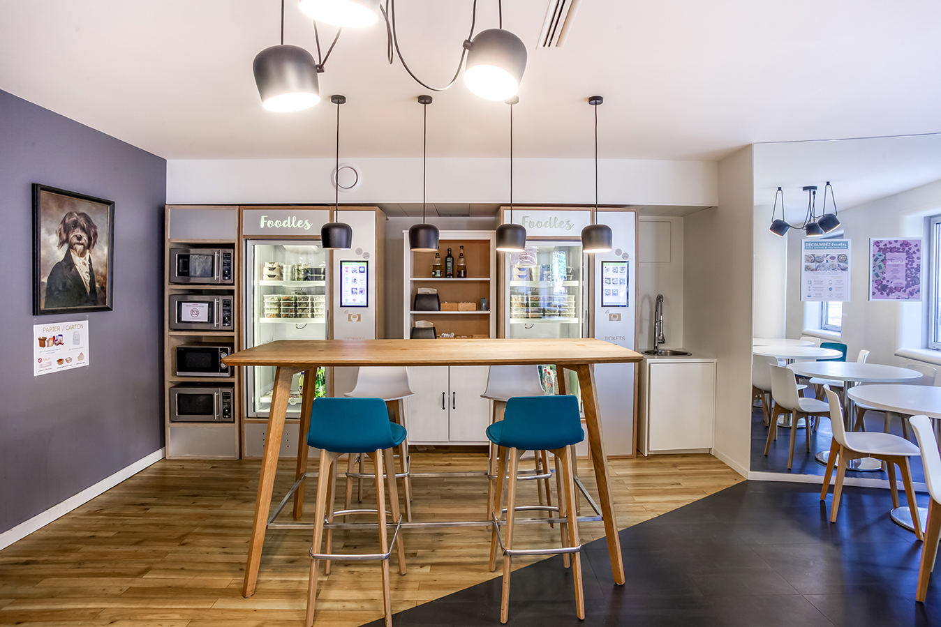 Mientras que las grandes empresas públicas suelen trabajar con una empresa de servicios de alimentos, como Elior, la inversión inicial es demasiado importante para la mayoría de las pequeñas empresas. Foodles se dirige a pequeñas empresas con su solución de pila completa.