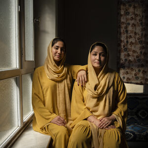 Sumaya, 22, with Bahara, 25, former students at the National Military Academy of Afghanistan