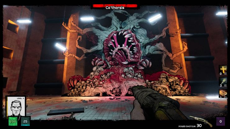 De buenas a primeras, es obvio que Perdóname padre es un cariñoso tributo a los antiguos juegos de disparos en 2.5D, ya que tiene hermosos fondos y sprites al estilo de los cómics, que casi hacen que el juego se sienta como un juego increíblemente bien hecho. Condenar modificación. Perdóname padre también cuenta con una banda sonora de heavy metal que evoca Condenar y se acelera cada vez que aparecen monstruos. La jugabilidad también sigue el estilo retro, con botiquines en lugar de regenerar la salud y niveles que implican encontrar llaves, en lugar de varios pasillos largos cosidos. También hay algunos momentos de disparos en la arena, con el jugador encerrado en una habitación y luchando contra hordas de enemigos para adquirir artículos. El ciclo de juego es tan divertido ahora como lo era a principios de los 90, especialmente para aquellos que aman los juegos de disparos desafiantes.