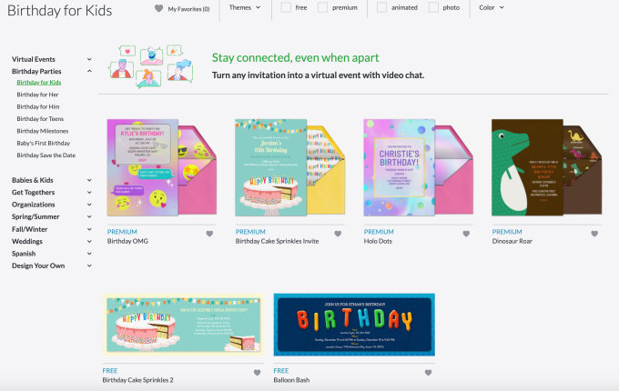 Incluso si elige ir por la ruta de bricolaje para organizar un simple chat de video FaceTime, Google Hangouts, Zoom o Skype, hay maneras de hacer que la invitación sea más especial que solo un mensaje de texto. Por ejemplo, el servicio de invitaciones digitales Evite ha actualizado su aplicación y sitio web para permitir que los anfitriones de fiestas agreguen un enlace de video chat a su invitación personalizada.