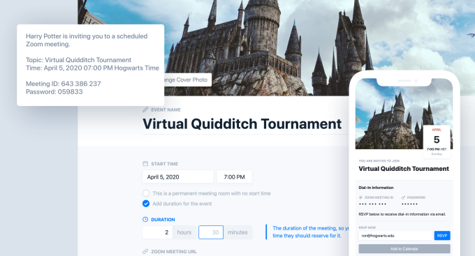 La aplicación de invitaciones digitales de Hobnob también se actualizó para facilitar que los amigos envíen invitaciones para eventos solo en línea a través de Zoom, Facebook Live y YouTube Live.