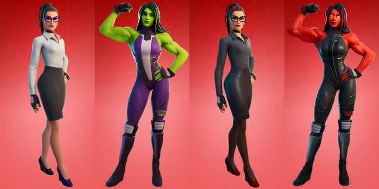 Lamentablemente, no presenta su fuerza de los cómics nacida de la gamma, pero sí presenta mazos de corte como herramientas de recolección. Su piel alternativa le da a Jen Walters un esquema de color rojo y negro que encaja con su forma de She-Hulk, transformándola en la Red She-Hulk de los cómics.