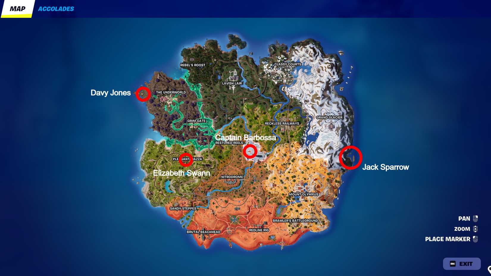 Todas las ubicaciones de los NPC de Piratas del Caribe en Fortnite Capítulo 5 Temporada 3