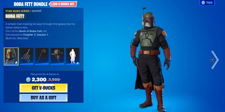 Boba Fett se ha agregado a Fortnite en anticipación a la serie The Book of Boba Fett. El atuendo se puede comprar solo o en un paquete usando V-Bucks.