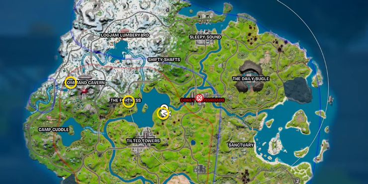 La próxima ubicación de Wiretap en Fortnite Capítulo 3 Temporada 2 se puede encontrar al este de Command Cavern en The Fortress. Si bien es posible correr montaña abajo hasta el segundo lugar de Wiretap, se recomienda a los jugadores que usen los cañones de asedio en Command Cavern para lanzarse al cielo y llegar rápidamente a The Fortress. Nuevamente, el dispositivo de búsqueda debe colocarse cerca de la rampa en el lado occidental del enorme avión.
