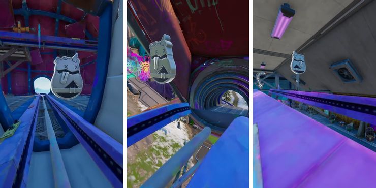 Después de recoger la primera ficha en Rave Cave of Capítulo 3 Temporada 3, súbete a un Baller disponible y comienza a andar en la pista que sale de la boca del líder del equipo Cuddle. Sigue los rieles hacia el avión para encontrar el segundo Tover Token. Durante esta sección, el Baller estará fuera de la pista por varios momentos, así que asegúrese de no caerse después de salir por la parte delantera del avión. Continúa hacia la cueva para encontrar la tercera ficha en el ferrocarril.