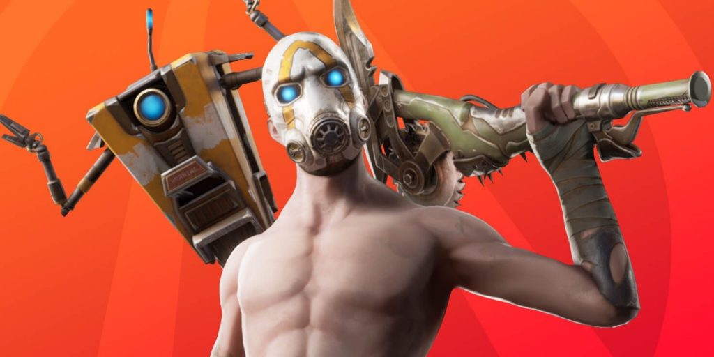 Epic Games anunció el Fortnite Borderlands cruce en el Fortnite sitio web. La colaboración, llamada "Fortnite X Mayhem ", presenta el paquete Psycho Bundle a la tienda. La compra del paquete desbloquea la máscara Psycho (basada en el icónico Borderlands enemigo del mismo nombre), el conjunto de armas duales Buzz Axes y el Claptrap Back Bling. Claptrap, el Borderlands La mascota robótica y diminuta de la serie, baila, toca y hasta habla cuando está equipado como Back Bling, ladrando frases similares a las que grita en sus propios juegos.