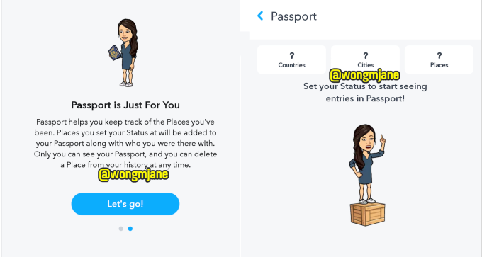 Mientras tanto, "Passport es solo para ti: Passport te ayuda a realizar un seguimiento de los lugares en los que has estado. Los lugares en los que establezca su estado se agregarán a su pasaporte junto con quién estuvo allí. Solo puede ver su pasaporte y puede eliminar un lugar de su historial en cualquier momento ”. Su estado solo dura hasta que abandone un lugar, pero se cuenta junto con la cantidad de países y ciudades que ha registrado en su pasaporte. .