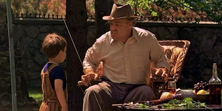 La escena en cuestión también resultó ser la escena final en la que el jefe del crimen Vito Corleone (Brando) está vivo, ya que fallece momentos después mientras juega con su nieto. La colocación de Brando de la cáscara de naranja en su boca fue una improvisación por parte del famoso actor. Coppola ha declarado que la decisión de Brando de hacerlo en realidad salvó la escena y que luego el estudio quiso cortarla por completo. Afortunadamente, la escena se mantuvo, ya que ofrece uno de los pocos momentos suaves de la película. Es un momento sincero entre un hombre que se ha ganado la vida a través de la violencia y la próxima generación de la familia Corleone. La escena es una parte cinematográfica engañosamente informativa que ofrece a los espectadores mucho más de lo que se muestra en la superficie.