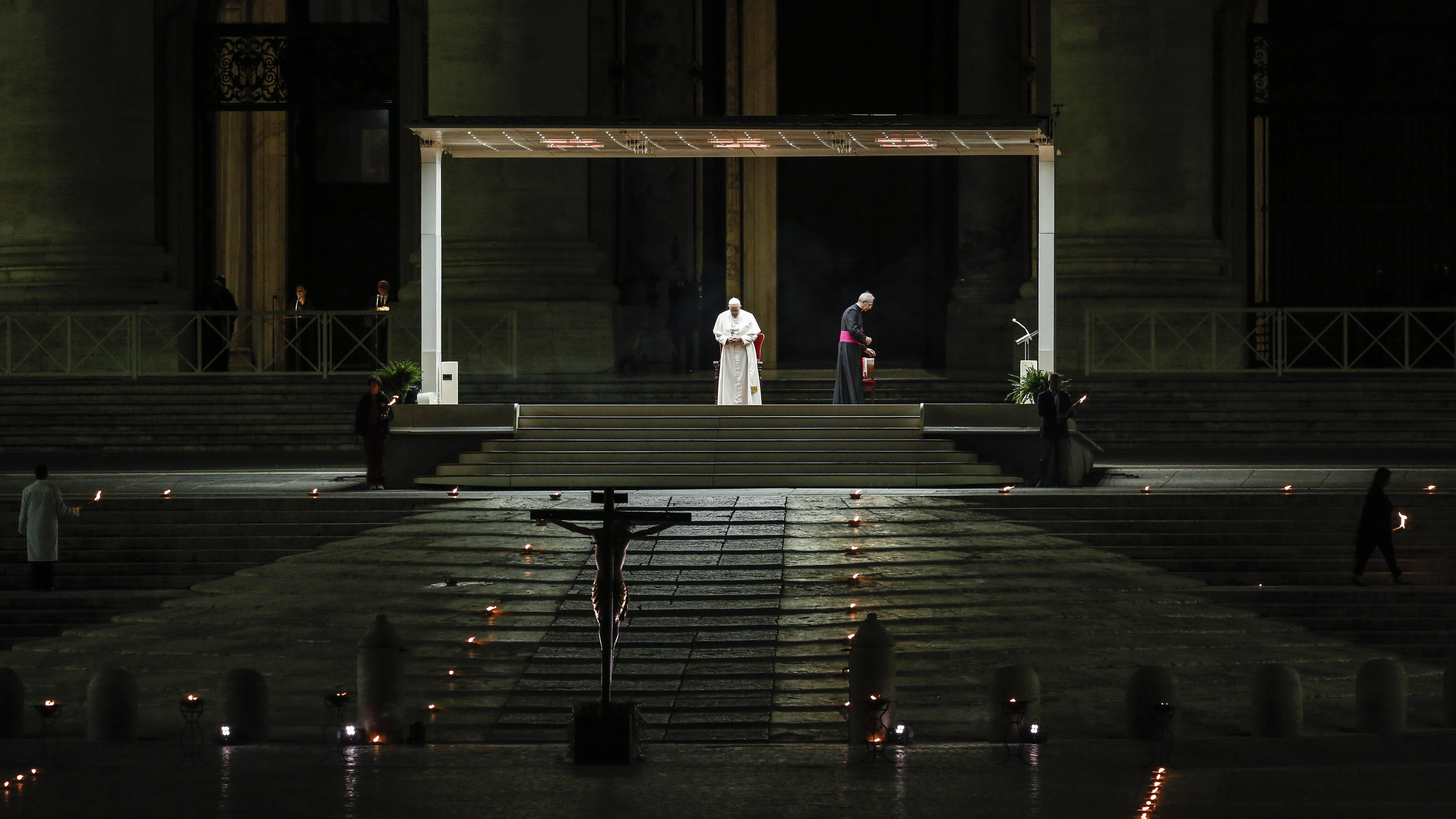 El papa Francisco rezó una breve oración para que la humanidad no sucumba a la oscuridad: “Señor, no nos dejes en las tinieblas y en la sombra de la muerte, protégenos con el escudo de su poder. Dios, defensor de los pobres y afligidos, ayúdanos a soportar el yugo cada día”.