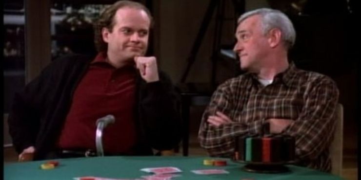 Puede que no le gusten las personas de la alta sociedad presumidas, la comida francesa o los palcos de ópera, pero sonríe y lo soporta para pasar algún tiempo con sus hijos. Y aunque pueden aceptar a regañadientes visitar el restaurante grasiento ocasional o el asador con temática de madera, Frasier y Niles agradecidamente devuelven el favor.