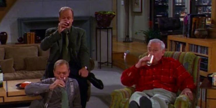 Romper es difícil de hacer, y nadie lo sabe mejor que los tres Cranes en “Shutout in Seattle: Part 2” (Temporada 6, Episodio 24). Después de que Frasier, Niles y Martin, los tres, sus seres queridos los dejen en el polvo, se encuentran agrupados en el mismo bar para ahogar sus penas. Afortunadamente, la noche no termina en borracheras con un poco de ayuda de Marty.