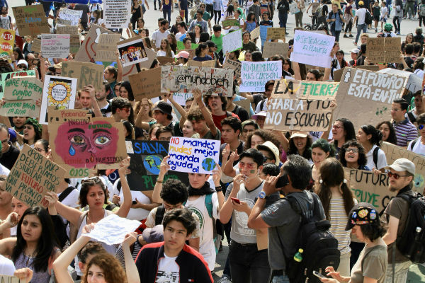 Los manifestantes, en su mayoría jóvenes, exigieron tomar medidas políticas y sociales en contra del calentamiento global y el cambio climático.