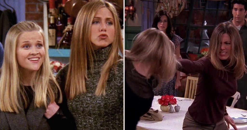 Aficionados de Amigos saber si Rachel Karen Green (Jennifer Aniston) no se deslizó por una ventana durante su boda y encontró su camino a Central Perk, estaría muy infelizmente casada con un dentista de Long Island, suspirando por Dias de nuestras vidas estrella, Joey Tribbiani (Matt LeBlanc). También se parecería mucho más a sus hermanas malcriadas Jill (Reese Witherspoon) y Amy (Christina Applegate).