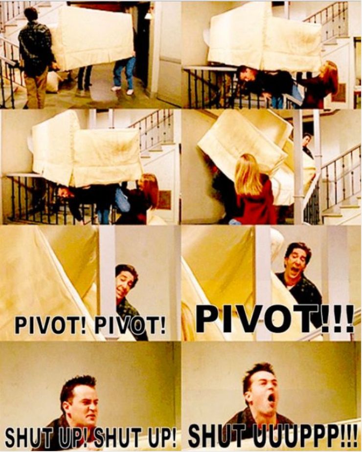 Este meme de me.me presenta una de las escenas más icónicas de toda la serie. Si bien hay muchos carretes de risa, la línea “PIVOT” sigue siendo un símbolo del programa y recuerda a los fanáticos una de las reacciones más histéricas.