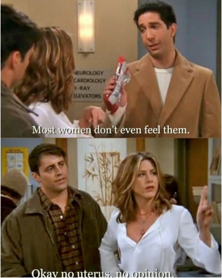 Este meme compartido en Facebook resume perfectamente la frustración de Rachel con su médico y luego con Ross. Cuando estaba experimentando Braxton Hicks al principio de su embarazo, ambos mencionaron que no eran gran cosa y que el dolor era menor. Como no son ellos los que experimentan los dolores, Rachel decide señalarlo.