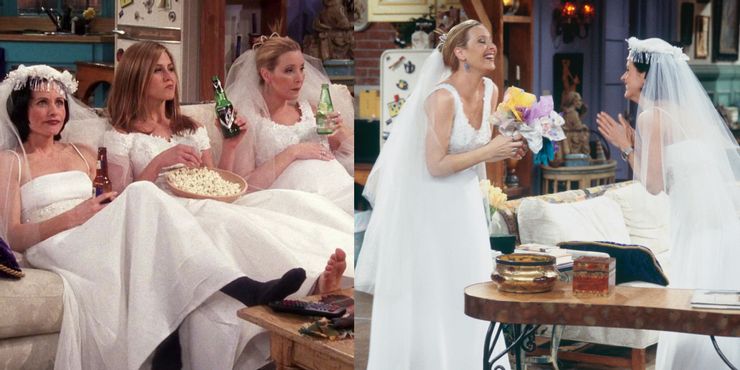 Esta sensación divertida y de película para chicas del episodio “El de todos los vestidos de novia” tiene momentos identificables para las chicas, ya que Mónica, Phoebe y Rachel se prueban vestidos de novia e imaginan cómo sería tener su propia boda.