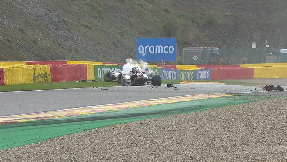 El piloto italiano perdió el control de su monoplaza en el sector 2 del GP de Bélgica de F1 2020, al acelerar antes de tiempo, y no pudo hacer nada para evitar una fuerte colisión contra el muro que devolvió su coche al asfalto, totalmente deshecho.