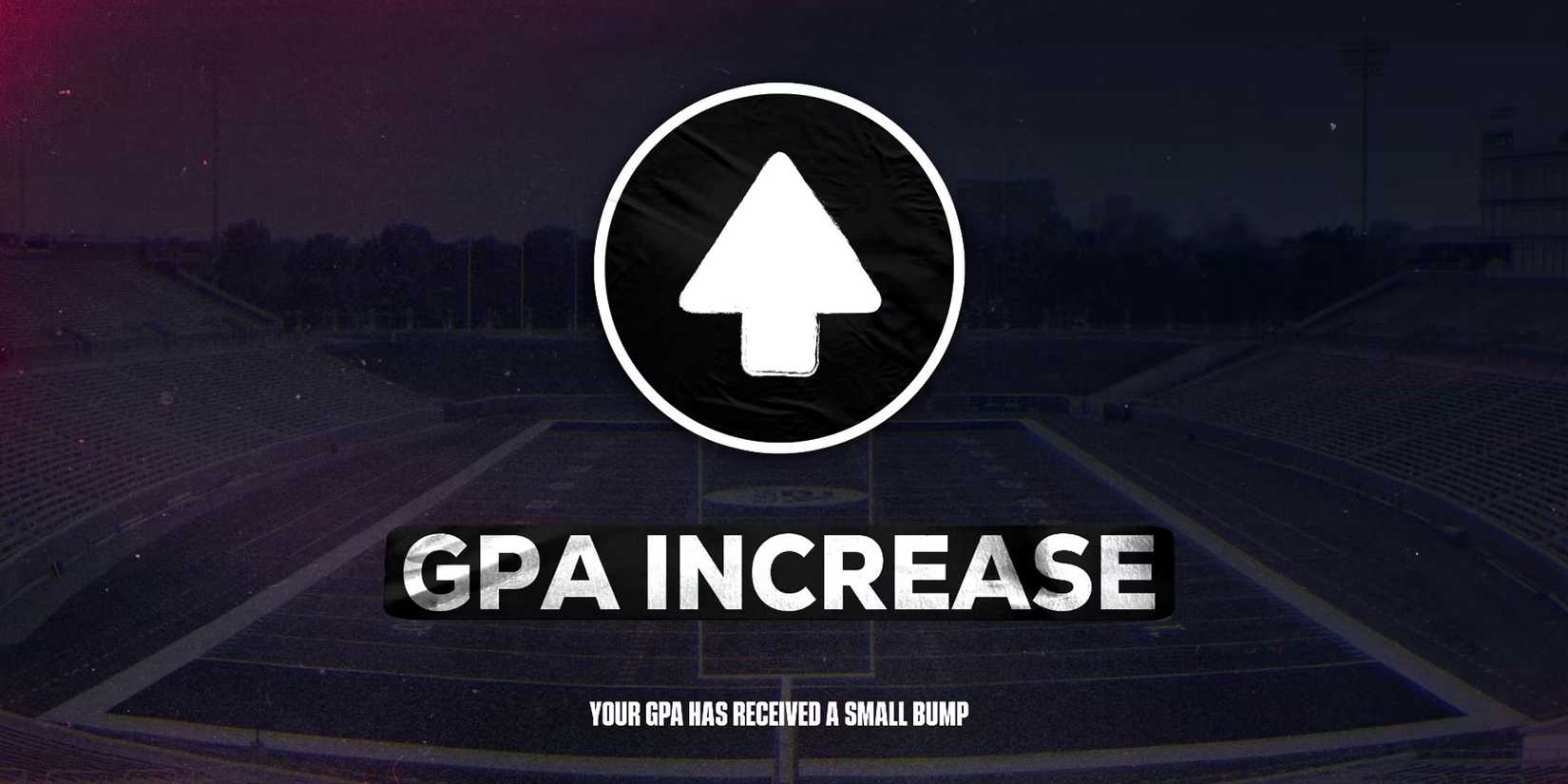 La forma más fácil de aumentar tu GPA en Fútbol universitario 25 es pasar un Una buena parte de tu energía entre juegos la dedicas a estudiar.Esto es particularmente importante justo antes de las semanas ocho y quince, ya que es cuando se realizan los exámenes que determinan tu promedio de calificaciones. Sin embargo, esto tendrá un costo, ya que no podrás mejorar tus estadísticas para tu desempeño en el campo mientras lo haces.