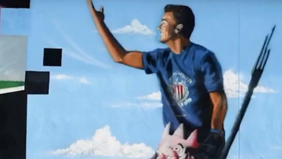 Pero el de Leganés quería más. Y ahora ha encargado que le pinten un graffiti con otra imagen icónica. La que tiene en Neptuno celebrando LaLiga de 2014, cuando se subió al dios de los mares ante una enfervorecida afición colchonera. Una foto de Tania Delgado que ya es historia.