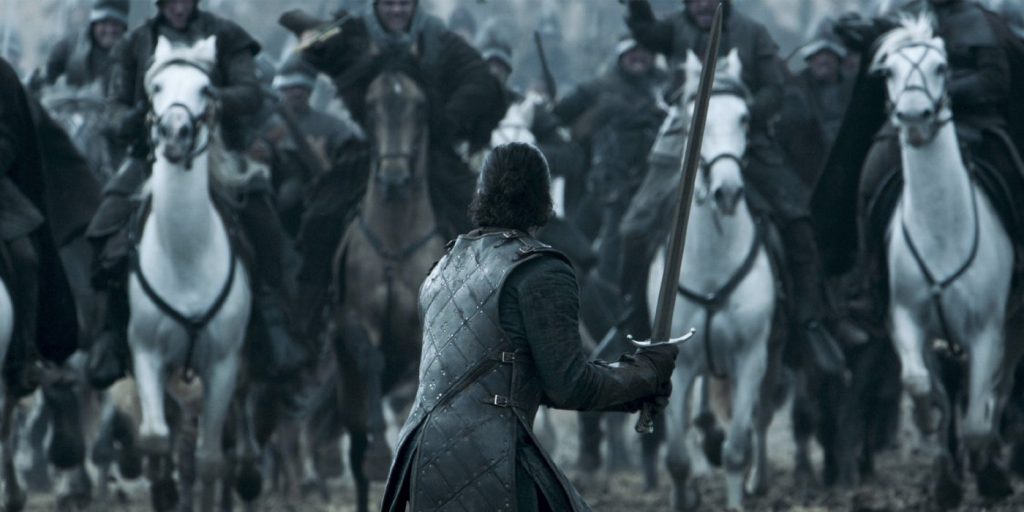 El momento es impresionante cuando Jon saca su espada y observa cómo la caballería se acerca cada vez más. Sorprendentemente, el disparo se logró sin CGI. Esos eran caballos reales cargando en Kit Harrington con trucos de cámara que les permitía parecer más cercanos. Fue un logro impresionante que resultó en un momento inolvidable.
